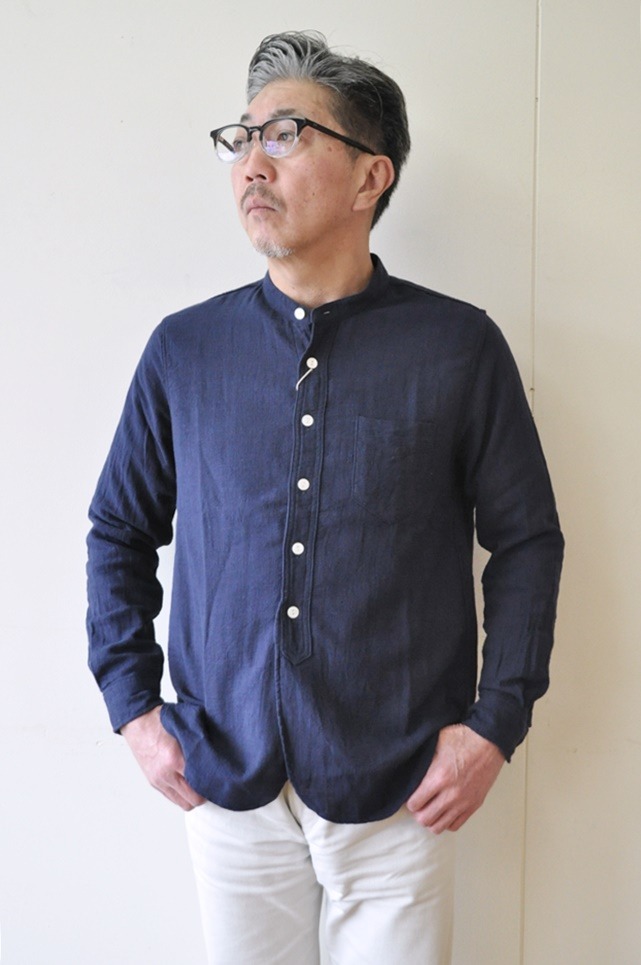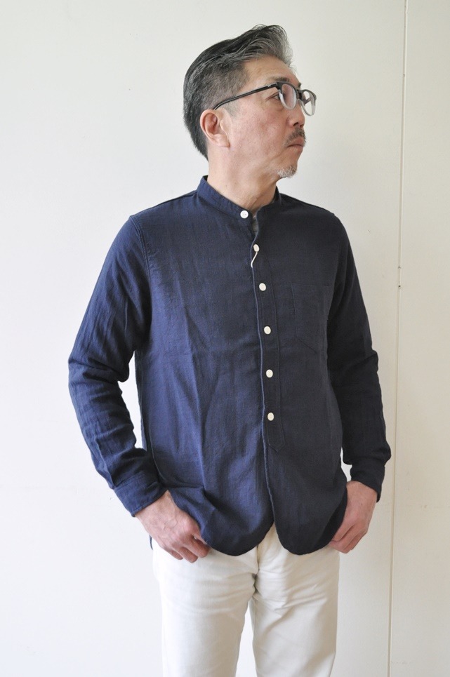 イギリス軍のバンドカラーシャツをイメージして作られた、雰囲気の良いシャツに仕上げました。