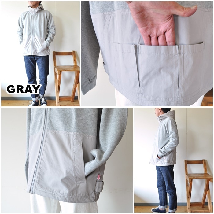 ジップパーカーなので、気候によって着たり脱いだりが楽なパーカー。