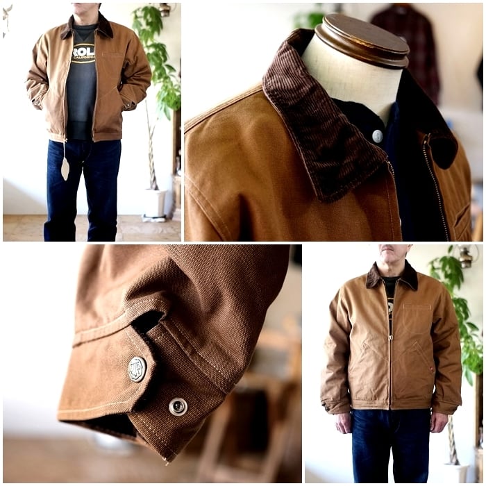 身頃に12.5オンスのコットンダック、襟とカフス裏に9ウェルのコーデュロイを使用したワークジャケット。
