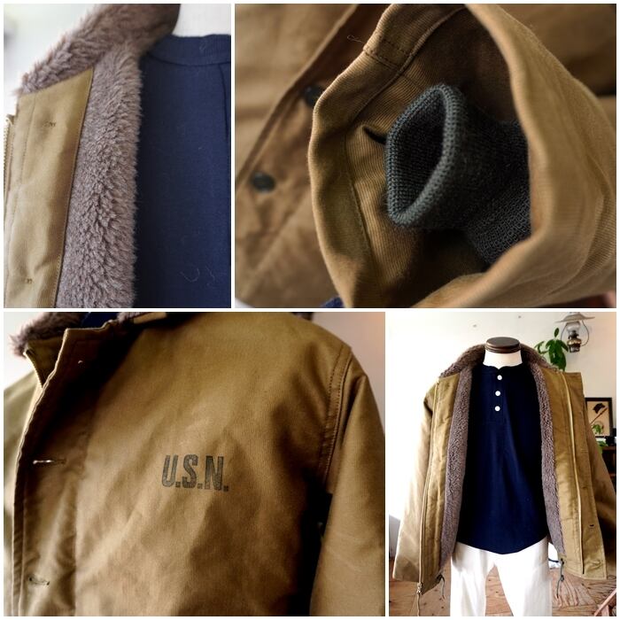 N-1デッキジャケットは同素材のトラウザースとセットで第二次世界大戦から朝鮮戦争にかけて米海軍の艦艇乗員用として採用された。表素材には他のデッキジャケット同様に通常“ジャングルクロス”と呼ばれるコットングログランが使用され、裏地には遮風性と保温性に優れたアルパカモヘア・ウールパイルを使用している。N-1のネイビーブルーモデルは1944年に採用され、翌1945年にはカーキモデルが支給された。その変更点はカラーだけでなく、袖口の内側に縫い付けられていたアルパカモヘアの省略、ライニング脇下と裾コード部に付いていたループの簡略や裾コード部アイレットの大型化、脇下アイレットの位置など顕著な違いを見せている。