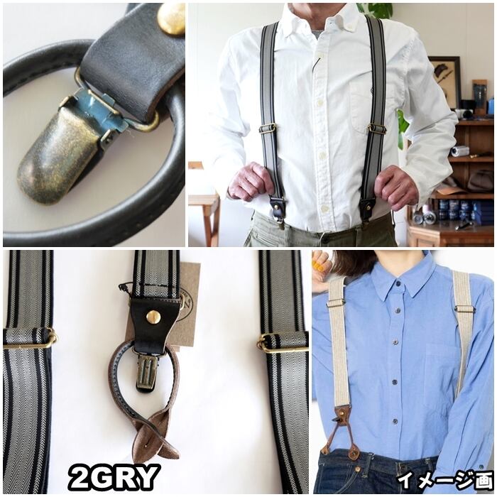 クロムエクセルレザーと幅広ゴムを使用したサスペンダー。