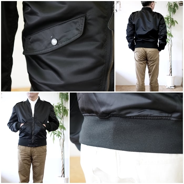シルエットやサイズ感は現代風にアレンジしタイト過ぎない程よいゆとりがフライトジャケット独特の曲線を描いている、