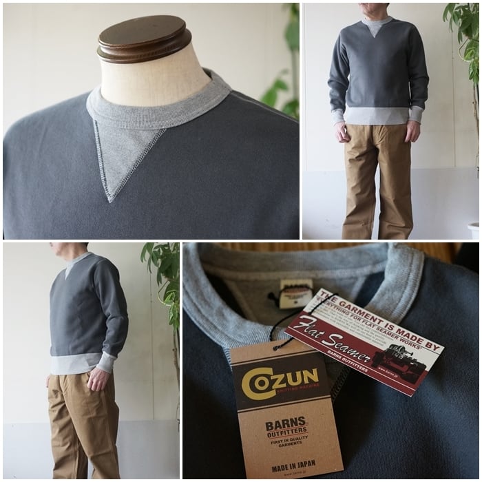 BARNS バーンズ クルーネックスウェット トレーナー BR3301 ダブルVガゼット COZUN(コズン)