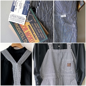 頑丈で耐久性のある肉厚の生地を採用し、汚れが目立たないストライプ柄は、ワークパンツとして当時から使われてました。