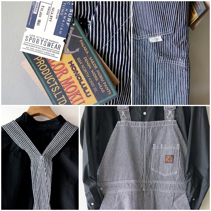 東洋エンタープライズのハワイアンブランド サンサーフより新作ストライプ柄オーバーオールのご紹介です。