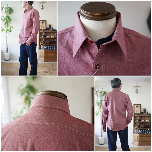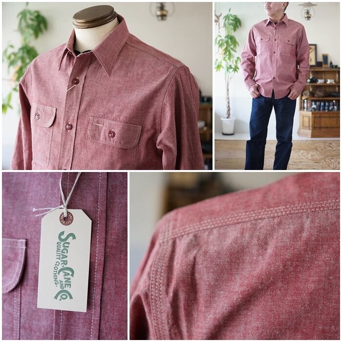 東洋エンタープライズのアメリカンカジュアルブランド シュガーケーンより、レッドシャンブレーワークシャツのご紹介です。