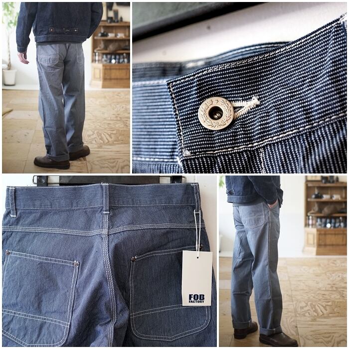 FOB FACTORY エフオービーファクトリー ヒッコリーワークパンツ F0548 ストライプ柄パンツ