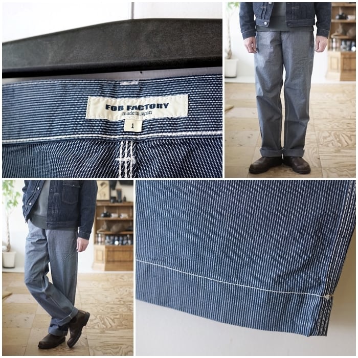 頑なに日本製にこだわるエフオービーファクトリーより、新作ヒッコリーストライプワークパンツのご紹介です。