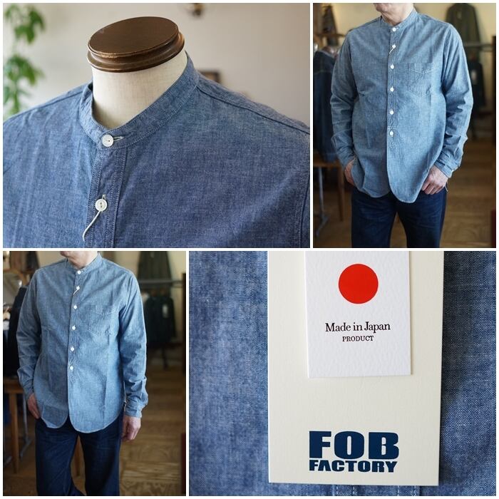 日本製にこだわり続ける 岡山ブランドのFOB エフオービーファクトリーより定番アイテムの長袖バンドカラーシャツのご紹介です。
