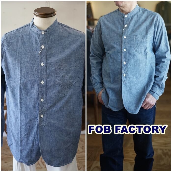 FOB FACTORY(エフオービーファクトリー) 綿素材 バンドカラー長袖シャツ/ BAND COLLAR SHIRT F3428