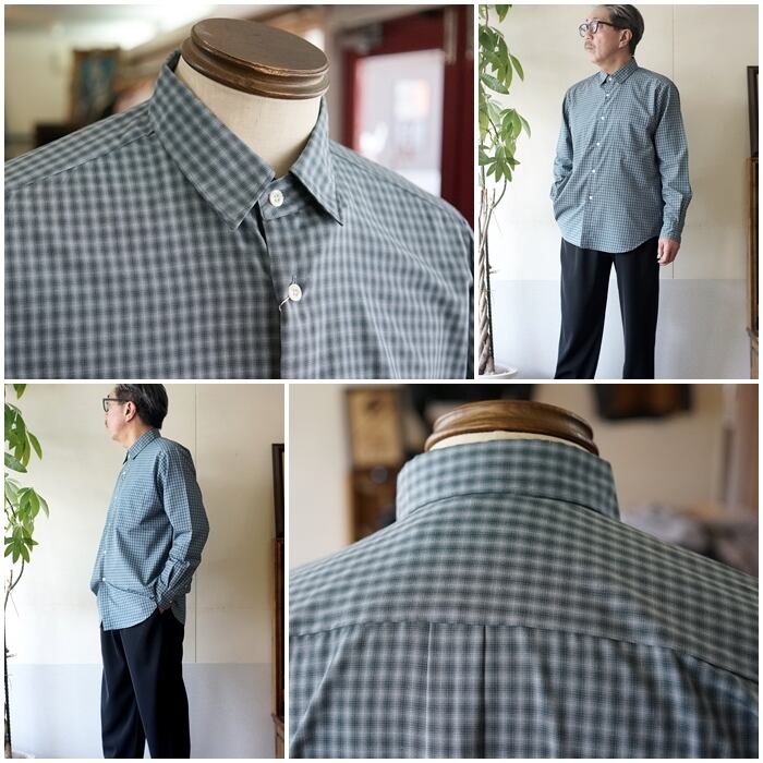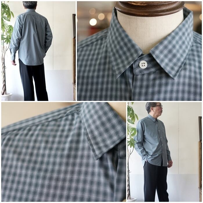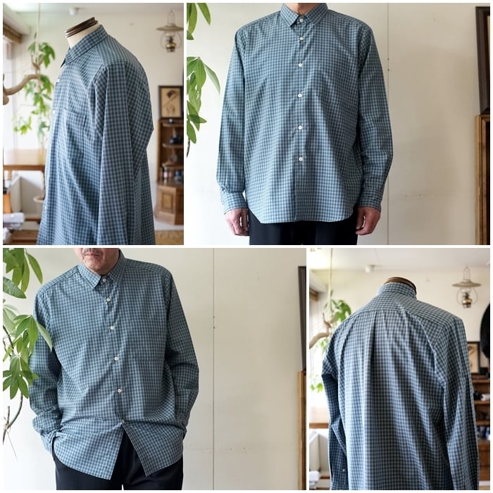 ブラーチェック ルーズフィット レギュラーカラー シャツ