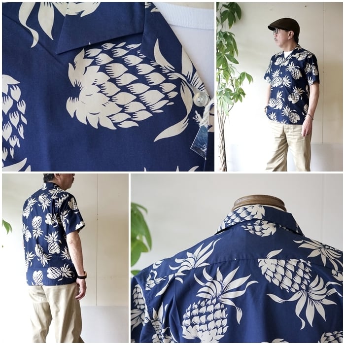 1950年代に作られたデューク・カハナモクのヴィンテージアロハシャツのなかでも代表的なデザインである「デュークス・パイナップル」をコットン素材で復刻。