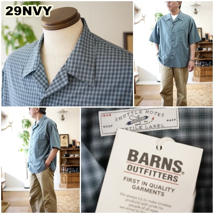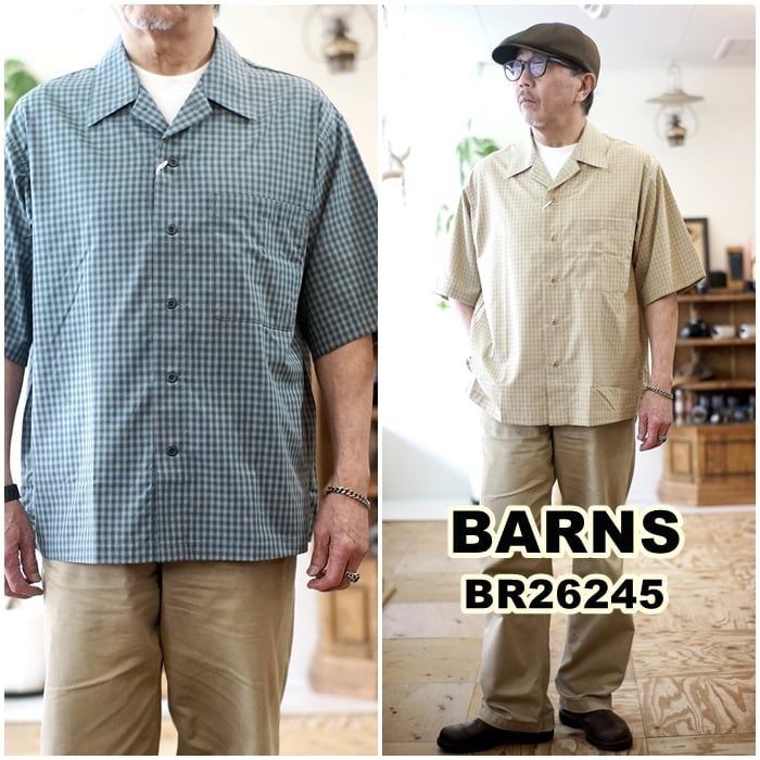 BARNS バーンズアウトフィッターズ 半袖オープンカラーチェックシャツ 半袖シャツ BR26245